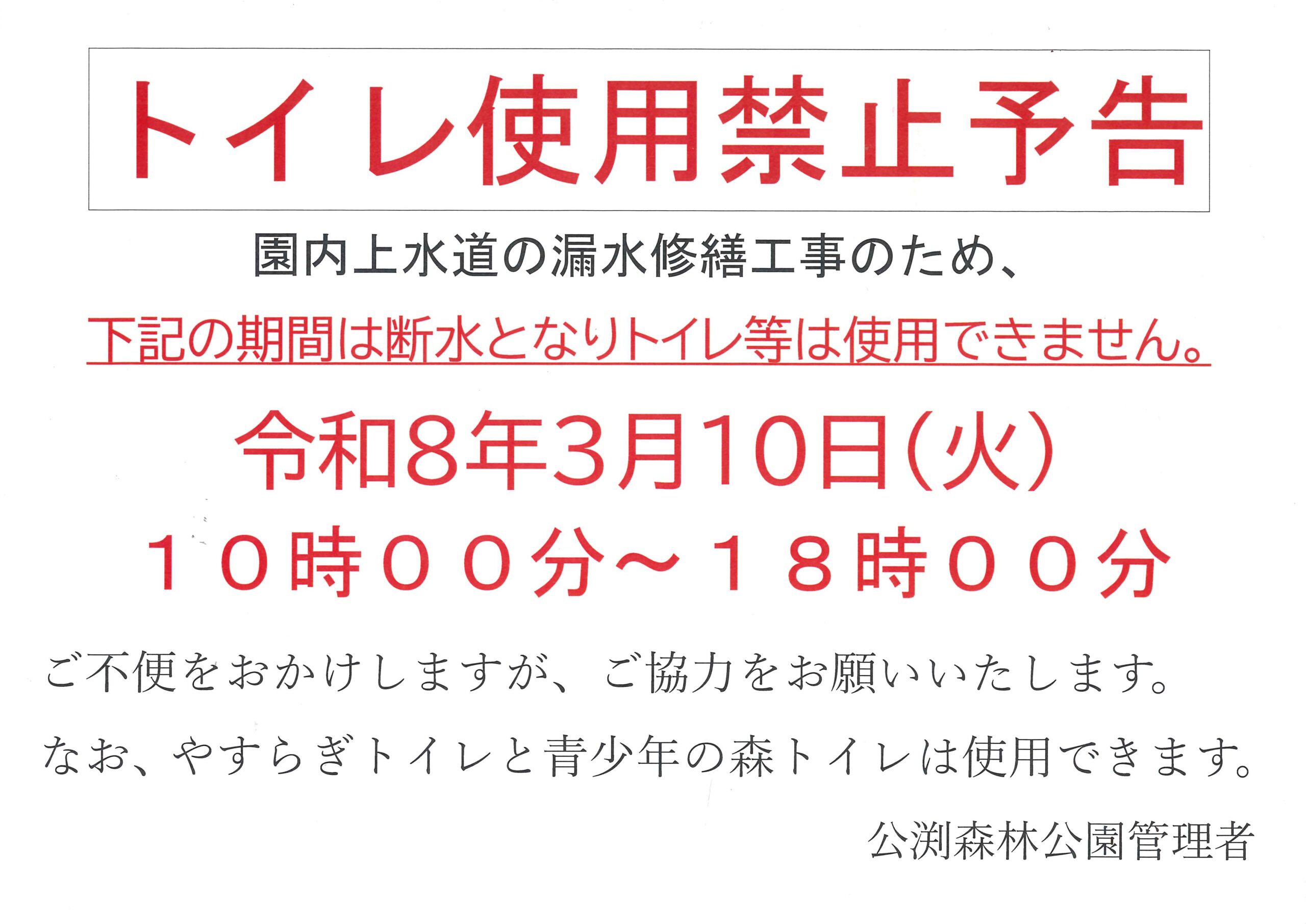 枯れた松の伐採を行うため、当分の間、「青少年の森エリア」には立ち入ることができません。ご迷惑をお掛けしますが、ご協力をお願いします。
