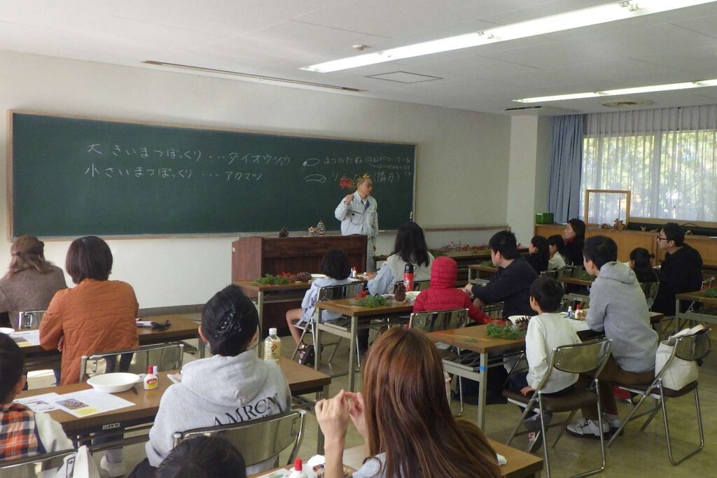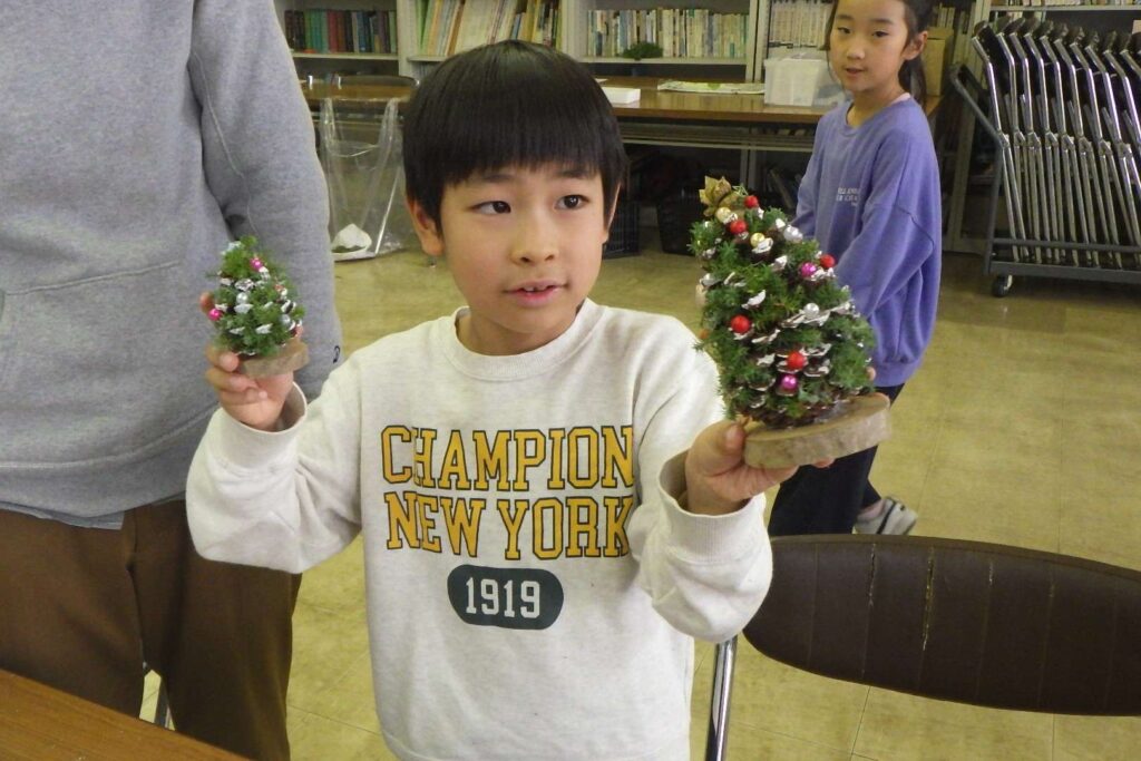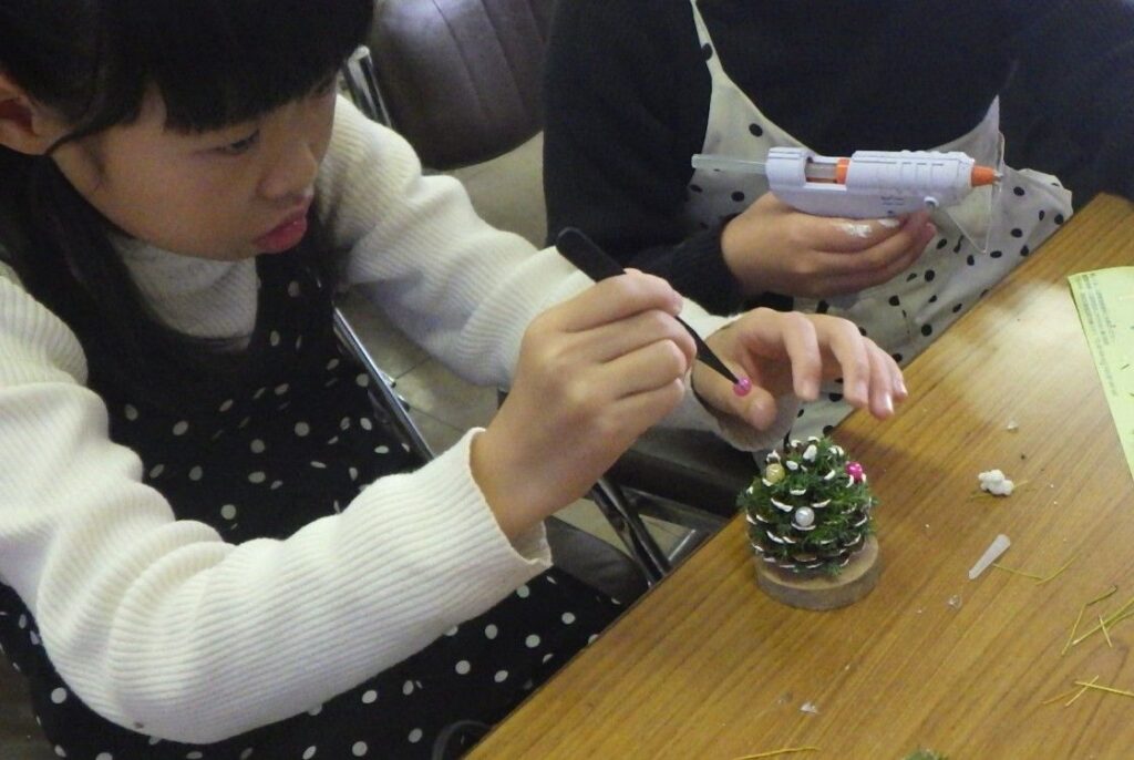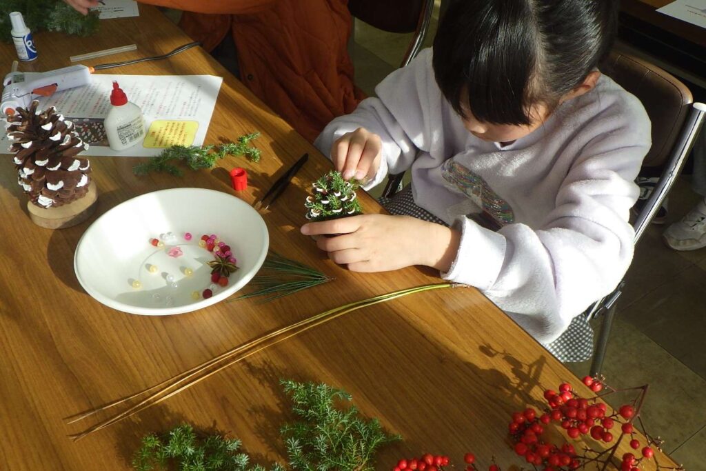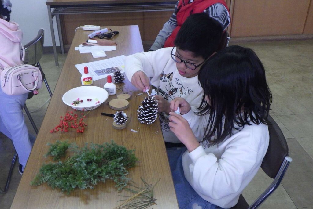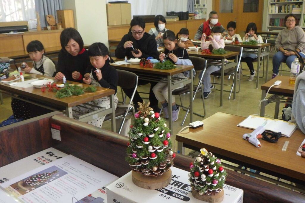 令和7年12月7日(日)「親子親子松ぼっくりツリー作り教室」が行われました。