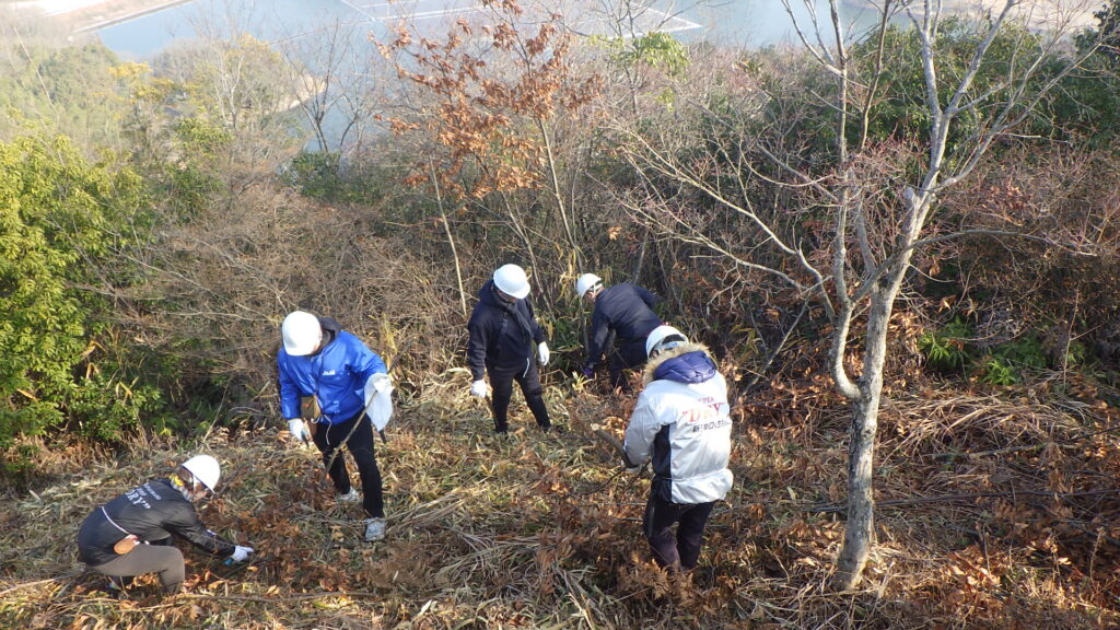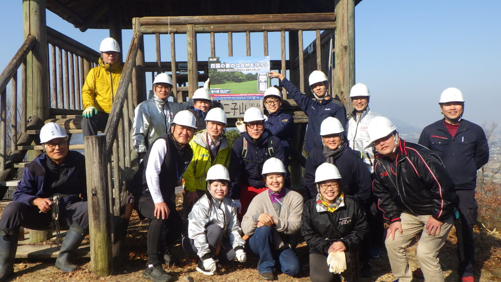 この活動は、アサヒビール株式会社四国支社と公益財団法人かがわ水と緑の財団が締結した「香川県の森林・水資源の環境保全に関する協定書」に基づき、四国支社の皆さんが公渕森林公園で環境保全に取り組んだものです。