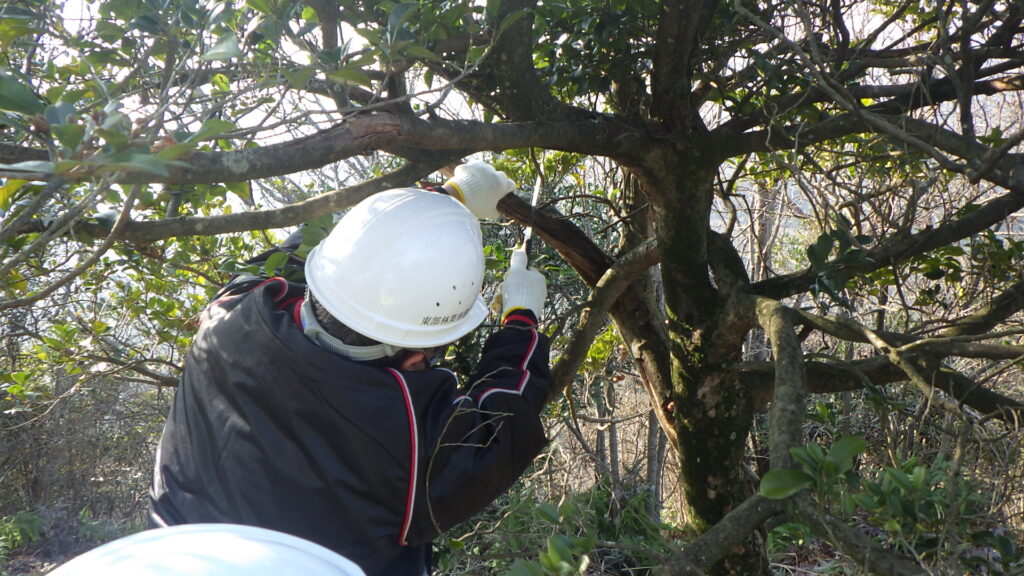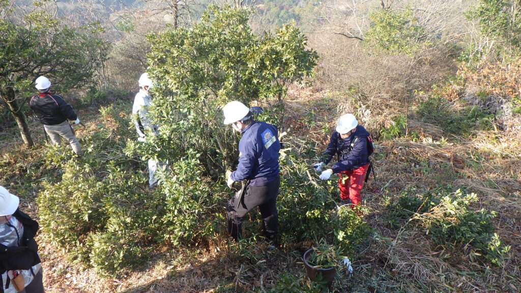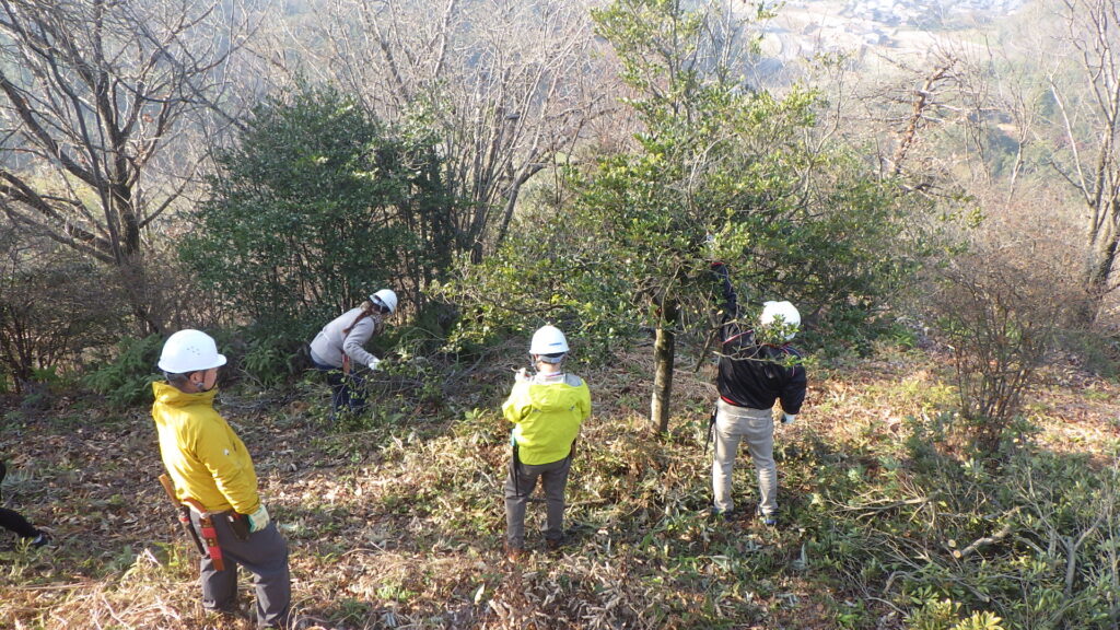 当日は、二子山への登山の道中に遊歩道でゴミ拾いを行ったのと、二子山山頂展望台の周辺で景観改善のための支障木除去等を行いました。活動終了後は、展望台からの見晴らしが大変良くなりました。