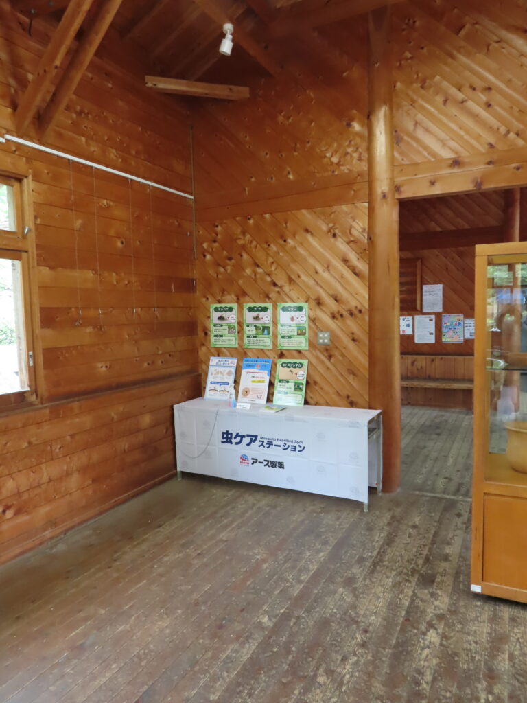 アース製薬様から公園内の害虫の説明パネルとパンフレット、虫よけ剤(はだまも)の試供品をご提供いただき、虫ケアステーションとして設置させていただきました。